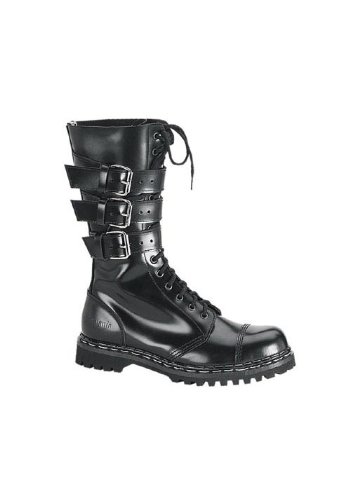 Heel Height: Approx. 1 1/4'' Tall. Modish boots featuring a steel toe, leather upper, laces and multiple adjustable straps.