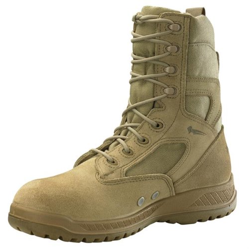 8" Steel Toe Boots. Provides up to 3x longer wear than standard outsoles. Better able to resist cuts and scratches. Better able to absorb shock. Stronger one-piece sole will not separate, even under heavy wear. Super premium insert to enhance overall comfort. Provides improved slip resistance in colder conditions vs. standard military outsoles. Field tested by DoD with proven excellent results. Full Grain Cowhide Leather & CorduraNylon Fabric. Vents for Drainage & Cooling...Read more