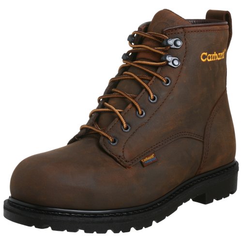 The classic steel-toe job site boot now with waterproof construction. Carhartt, the biggest name in workwear has updated a work boot classic! They've taken the fit and feel of the 6", full-leather work boot and added to it a full waterproof membrane. And that's not all that makes this boot king of the job site: Full-grain waterproof leather upper won't crack even after constant soaking; Full waterproof membrane keeps feet dry through the worst weather; ANSI-approved steel safety toe; Top-quality Dri-Lex moisture-wicking lining; Contoured removable insole; Direct-attach welt construction with lighter more flexible Texon bed instead of the more common cardboard; Oil-resistant ATV polyurethane sole with non-slip traction pattern; 5-eyelet / 2-speed hook lacing system; Each approx 6" tall and 34 ozs. Waterproof protection that can take a working-man's life! State Size and Width. Order Today! Men's Carhartt 6" Steel Toe Waterproof Boot, Tan..Read more