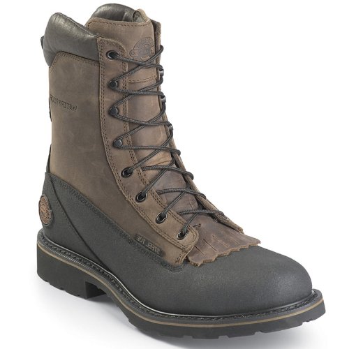 Justin 8" Work - Tex Lace - R Boots. 8" inches of solid workplace protection! SAVE BIG! Lace up a pair of these Stompers for serious 9-to-5 jobsite defense. Engineered by the professionals at Justin, these Boots got the "true grit" you want to get you safely from sun-up to sun-down. Classic stylish design looks good at the saloon, too! If you're looking for a worker that's heavy on features, but light on your wallet, your search is over, My Friend. Also available with optional steel toe and ASTM-rated electrical hazard protection for serious over-the-top workplace defense. Determination: Chocolate apache leather uppers and Black Tec Tuff vamps form a puncture-proof barrier around your feet; Round-toe welt construction for long-lasting durability; Waterproof, slip-resistant, and oil-resistant Work Tex rubber outsole for elite protection and grip; 35 ozs...Read more