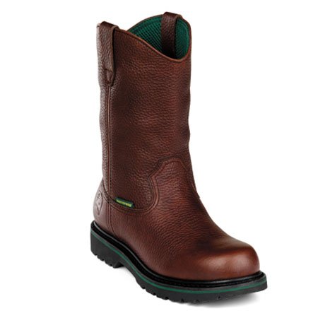 John Deere 10" Waterproof Wellington Boots... guard your feet from wet weather! Waterproof, work-ready Boots! You'll experience nothing but weather-resistant comfort, day after day, in these Wellington-style Boots from the folks at John Deere! You'll love the every-step durability provided by the Combine II rubber outsole! Has a a forest green Agion antimicrobial lining to help control foot odor. Specs: Waterproof, full-grain leather uppers; Removable John Deere air flow comfort orthotic system insert absorbs shock and keeps your feet feeling fresh; Steel shank for stability; Pull loops for easy on / off; Regular Boot weighs approx...Read more